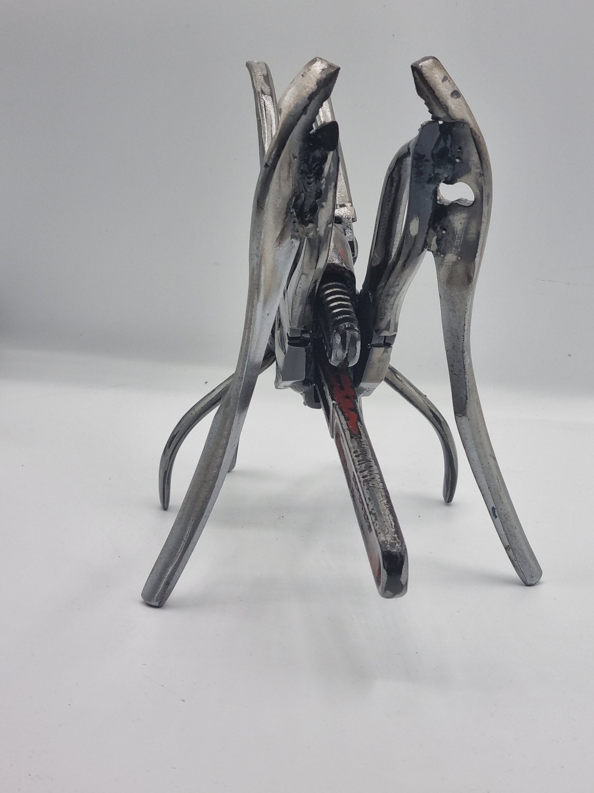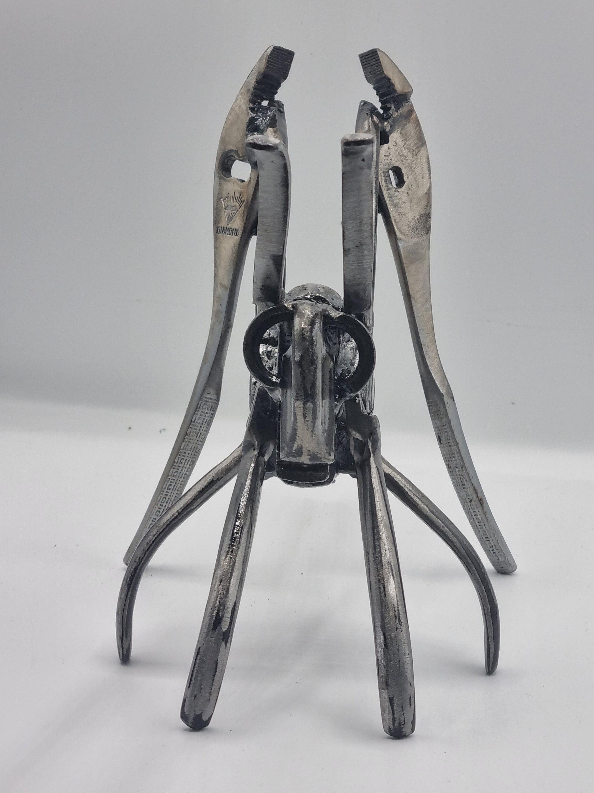 Cleverly assembled using repurposed parts — from pliers and spanners to bolts and screws — this sculpture celebrates both artistry and eco-consciousness. Its sturdy build makes it ideal as a striking display piece indoors or out, adding rustic charm to a garden, patio, or home décor setting.